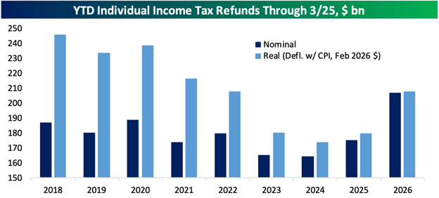 7. 2026 tax refunds are expected to set a record but will fall short of the inflation-adjusted levels seen prior to 2022: