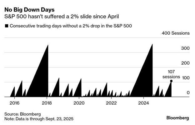 Equity markets continue to exhibit relative calm, even as speculative assets have surged over the past month or so. If there’s a recession, don’t look to consumers for a warning. More evidence of an increasingly asset-based economy. The end of “globalism.” H-1Bs. AI’s $100 million ARR club.