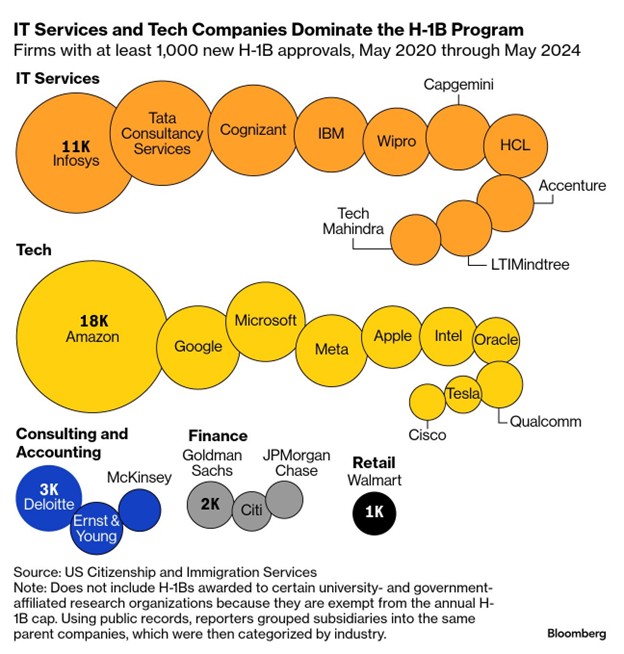 7. Big tech companies are among the heaviest users of the H-1B program: