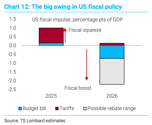 7. The U.S. economy is expected to receive a large fiscal boost in 2026, as tariff effects are largely in the rearview mirror and taxpayers are expected to receive large refunds from backdated tax cut: