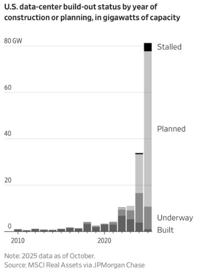 2. Staggering sums have been promised for the buildout of AI data centers, but projects and their revenue remain far in the future. How much will actually get built and when remains a question.